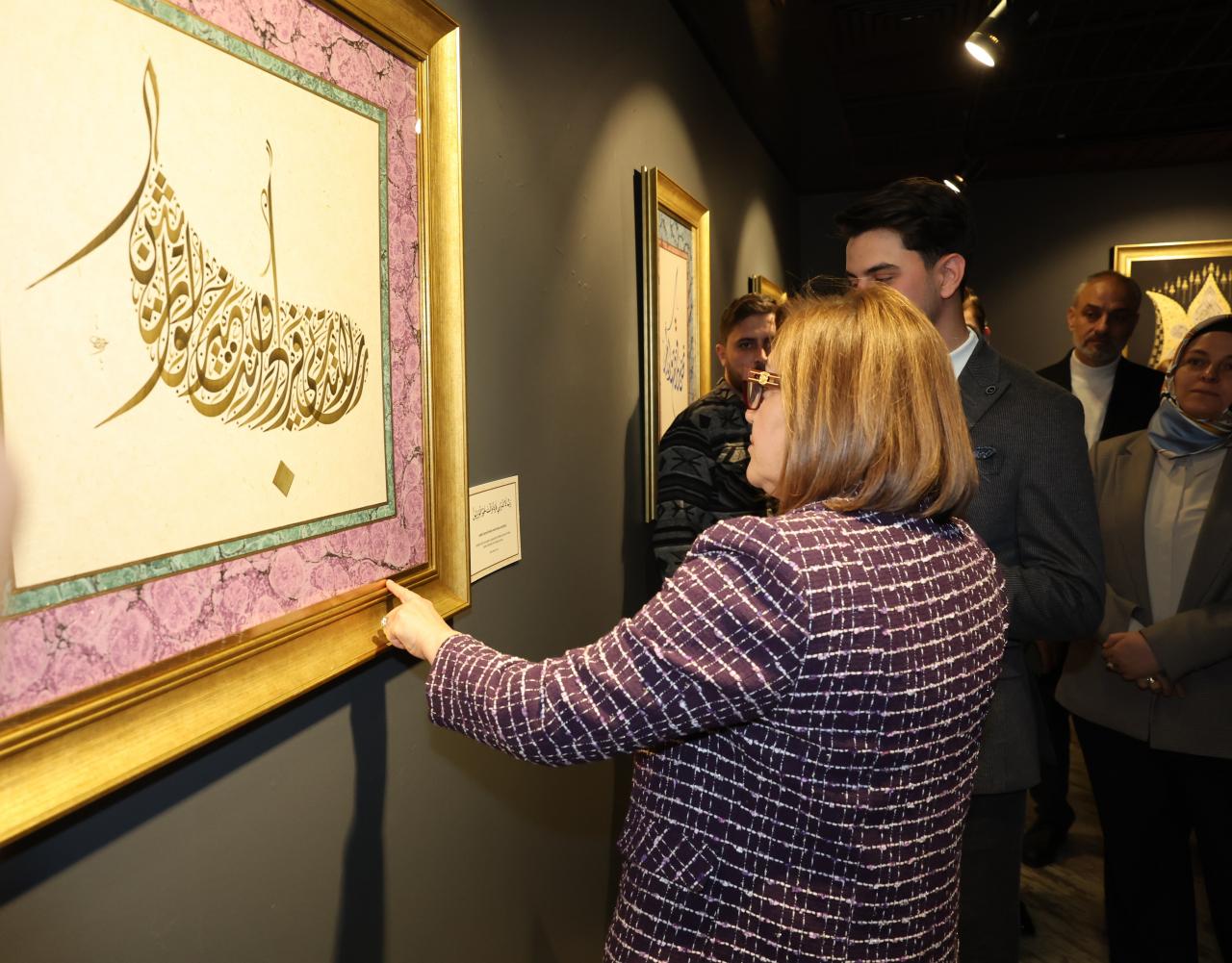 Açılışın ardından Gaziantep Büyükşehir Belediye Başkanı Fatma Şahin, sergiyi gezerek eserleri inceledi ve Hattat Ahmet Elbeşir’den çalışmalar hakkında bilgi aldı.