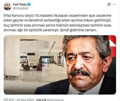 Feti Yıldız, yaptığı paylaşımda hükmün kesinleşme tarihine göre uygulanan mevcut sistemin adil olmadığını vurguladı.