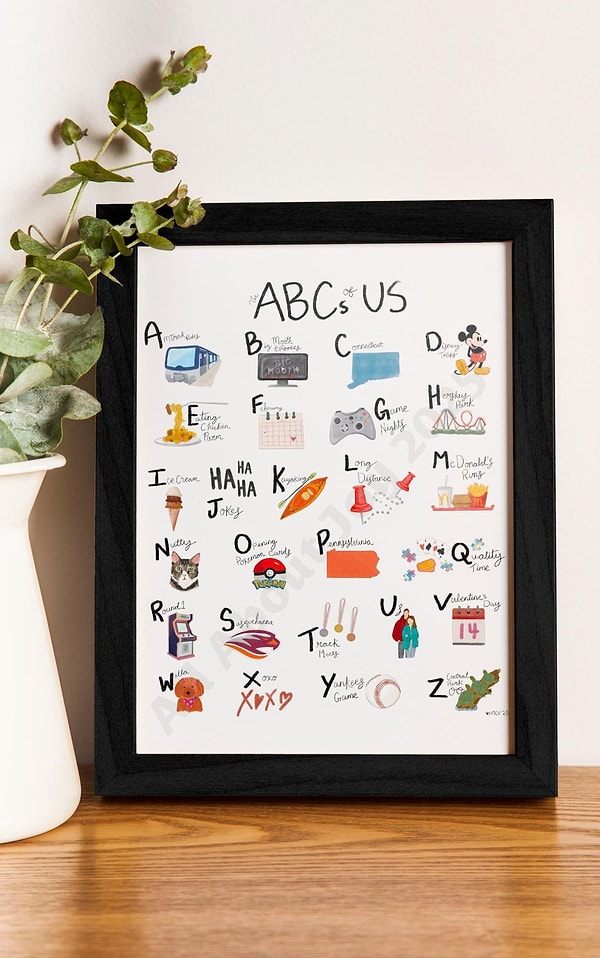 Alfabetik bir tablo çok keyifli bir şeye dönüşebilir. Sadece sen ve partnerinin sevdiği şeyler, ortak noktalarıyla dolu bir tablo olsaydı çok iyi olmaz mıydı? Sevdiğiniz şeylerin listesini çıkart sonra da tasarla!